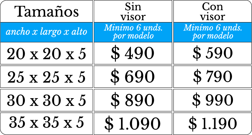 Base cuadrada de 25 cm x 25 cm