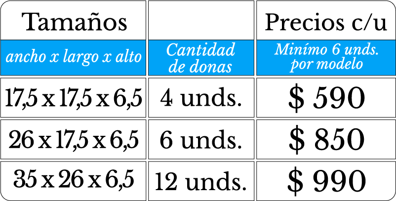 Fabricadas en Dúplex de 325 gr. son ideales para kuchen, pays, cheese cake, tartaletas, dulces árabes, picoteos, entremeses, pasapalos, tequeños, etc.
